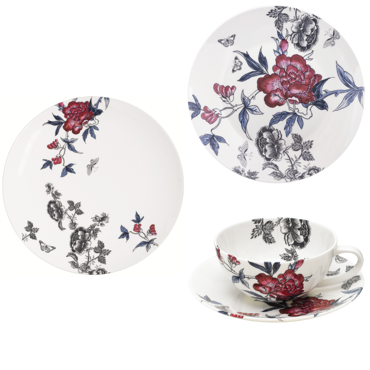 Невероятно красивый и изысканный обеденный комплект Rose Garden, куда входит две траелки размером 22 и 28 см, чашка и блюдце. Такая посуда из тончайшего костяного фарфора словно изумительная картина будет радовать ваш взор и точно не будет пылиться на полке. Она создана для ярких торжеств и вкусных блюд. Он станет украшением вашего стола, подчеркнет правильный вкус и стиль хозяйки кухни.