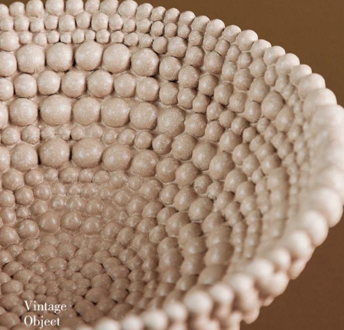 Но самое завораживающее в этом творении – это его текстура. Представьте себе поверхность, усеянную мелкими, идеально круглыми шариками. Они словно жемчужины, ровными рядами уложенные на керамическое ложе. Каждый шарик – это отдельный элемент, кропотливо созданный и прикрепленный к основе. Они играют со светом, создавая причудливую игру теней и бликов.