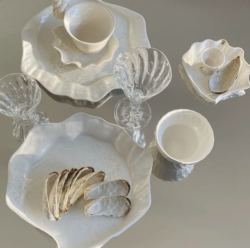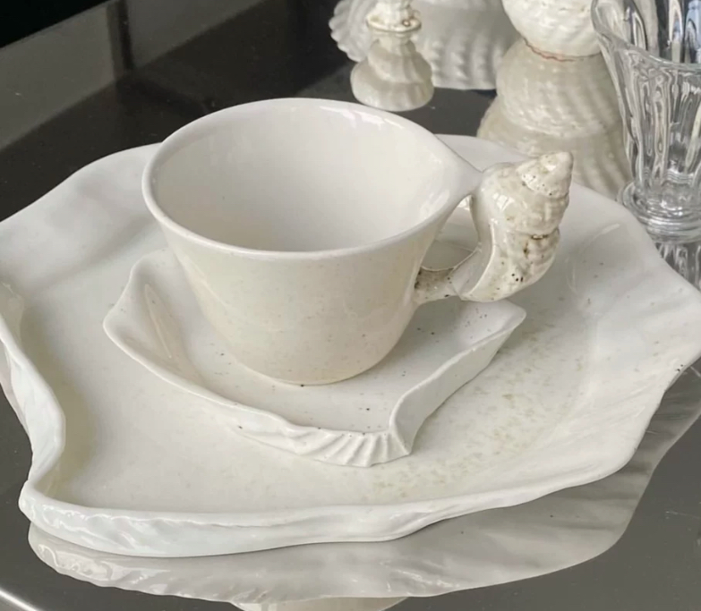 Форма этого блюда напоминает морскую ракушку с ее грациозными изгибами и волнистыми краями. Такой дизайн придает ему особую привлекательность и элегантность. Блюдо имеет нежный бежевый цвет, который придаёт ему естественный и спокойный вид. Кроме того, на его поверхности присутствуют природные вкрапления, добавляющие оригинальности и неповторимости.