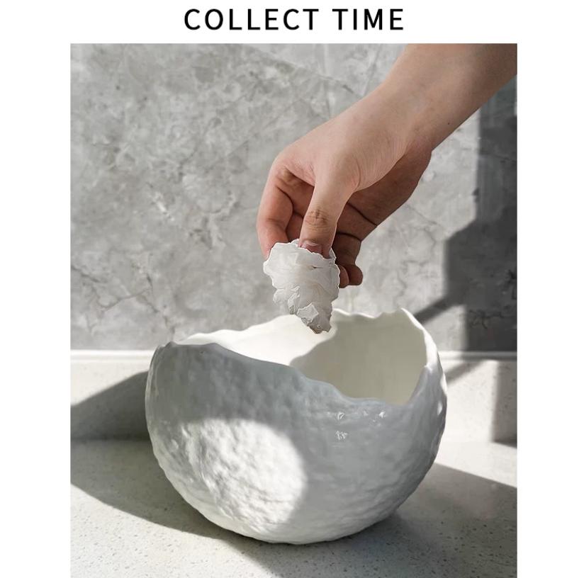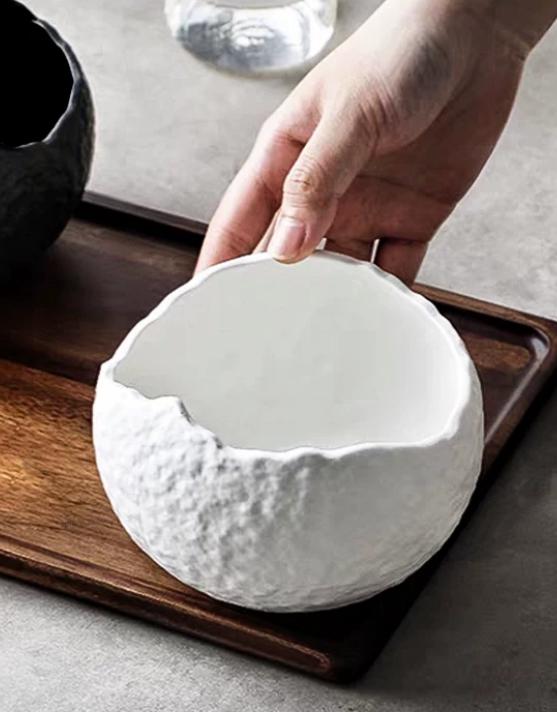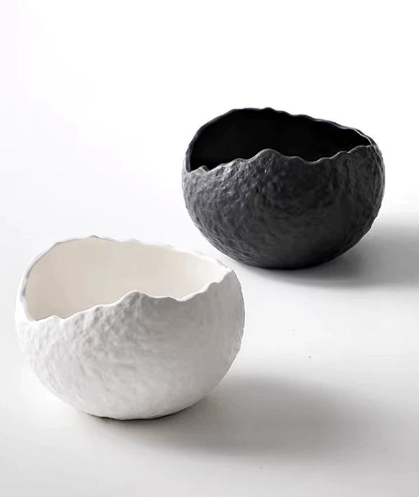 Белый цвет, наоборот, отражает свет, подчеркивая неровности и выступая как символ чистоты и недосказанности. Он гармонично интегрируется в общий дизайн, делая акцент на легкости и воздушности. Такое цветовое взаимодействие усиливается благодаря полуматовой глазури, которая покрывает вазу. Глазурь придает поверхности мягкое сияние, уравновешивая контрастность и добавляя глубину цветам.