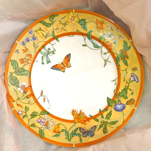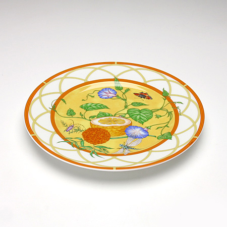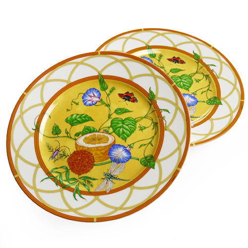 Яркий и такой уютный комплект из тончайшего костяного фарфора, в который входит две тарелки дополнит образ элегантного интерьера вашей кухни. А его теплые, летние узоры принесут в ваш дом настроение комфорта и веселья жарких посиделок на веранде! Невозможно быть истинным ценителем моды и при этом не обладать ни одной вещью HERMES. Пусть на этот раз это будет элегантный набор фирменных цветах этого известного дома моды!