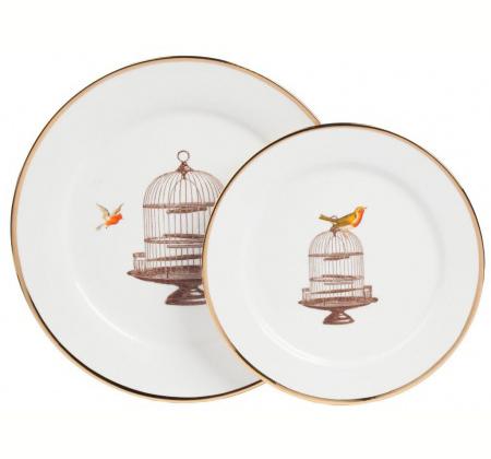 В набор входит две тарелки. Очаровательные тарелки с изображением дивной птицы и ее «дома».
