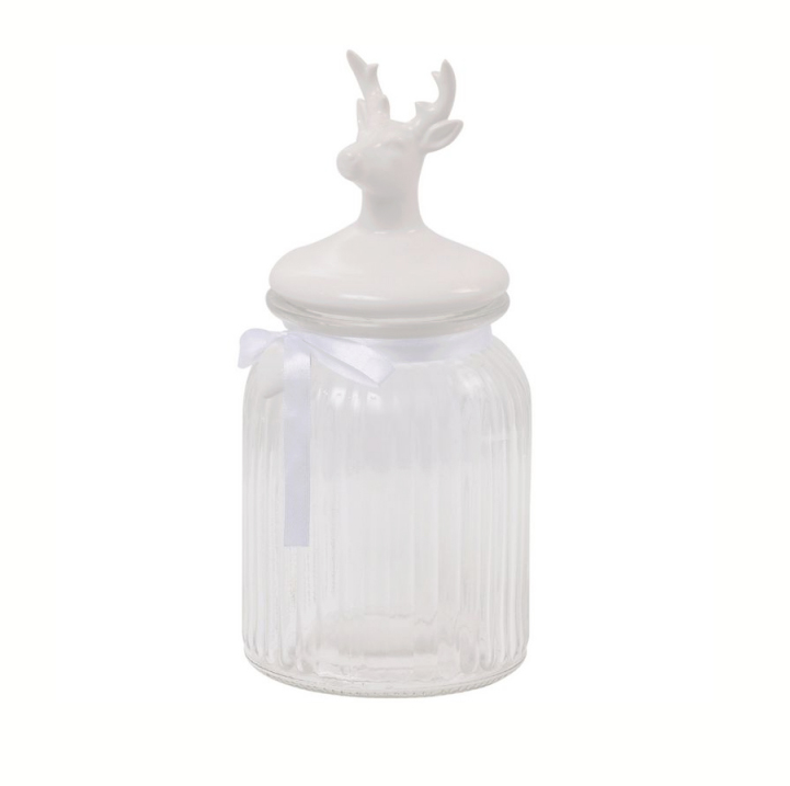 Милая и в тоже время практичная емкость для хранения Lolita Deer, может пригодится как на кухне, так и в ванной комнате. Выполнена в стиле прованс. Емкость сделана из рельефного стекла, крышка из керамики, декорирована баночка милой шелковой лентой.