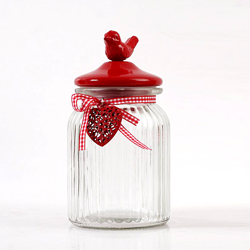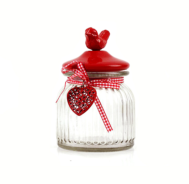 Очаровательная, яркая, веселая и в тоже время практичная декоративная емкость для хранения Red Bird, может пригодится как на кухне, так и в ванной комнате. Емкость сделана из рельефного стекла, красная крышка из керамики, декорирована баночка милой лентой.