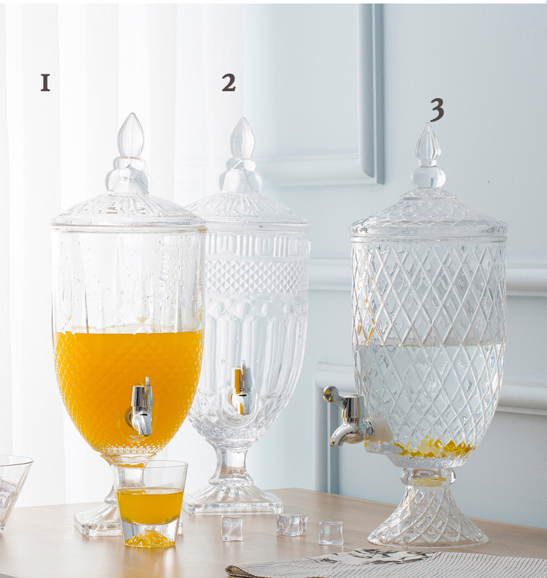 Такой лимонадник просто незаменим для качественной и праздной жизни. Эта емкость с разливочным краном изготавливается из высококачественного стекла, имеет высокую безопасность и не содержит токсичные вещества. Ее можно использовать для подачи гостям вина, чая, соков, яблочного уксуса и различных тонизирующих напитков. Особенности — это ее оригинальный и великолепный дизайн, краник емкости облегчает розлив напитка из емкости, а ее крышка предотвращает испарение жидкости, тем самым, поддерживая ее в свежем виде.