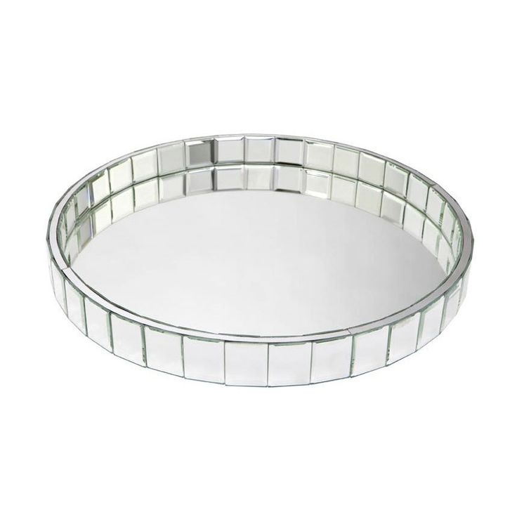 Круглый изысканный поднос выполненный из зеркал, непременно украсит как ваш туалетный столик, так и прикроватный столик. Решать Вам!