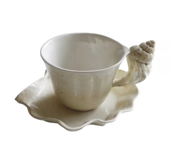 Что касается цветовой гаммы, то предметы чайной пары окрашены в нежный природный оттенок ракушек. Этот пастельный цвет придает паре особую изящность и делает ее более приятной для глаза.