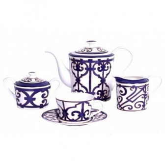 Чайный сервиз на 4 персоны, 11 предметов: чайник, молочник, сахарница, 4 чашки и 4 блюдца. Роскошный комплект дополнит образ изысканного интерьера вашей кухни.А его изысканные узоры принесут в ваш дом настроение праздника! Пусть на этот раз это будет изысканный сервиз в фирменных цветах этого известного дома моды!