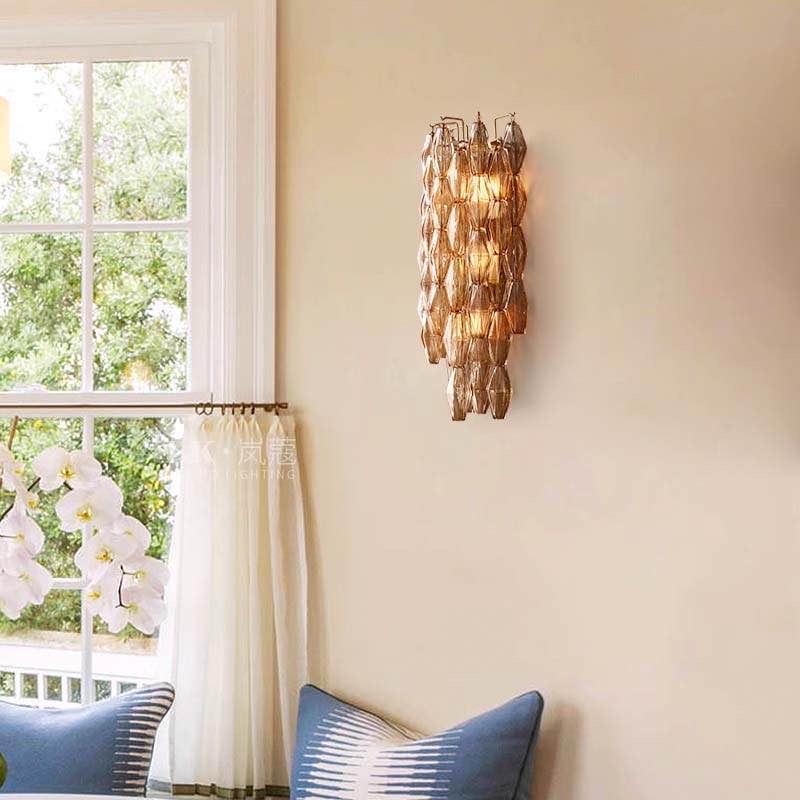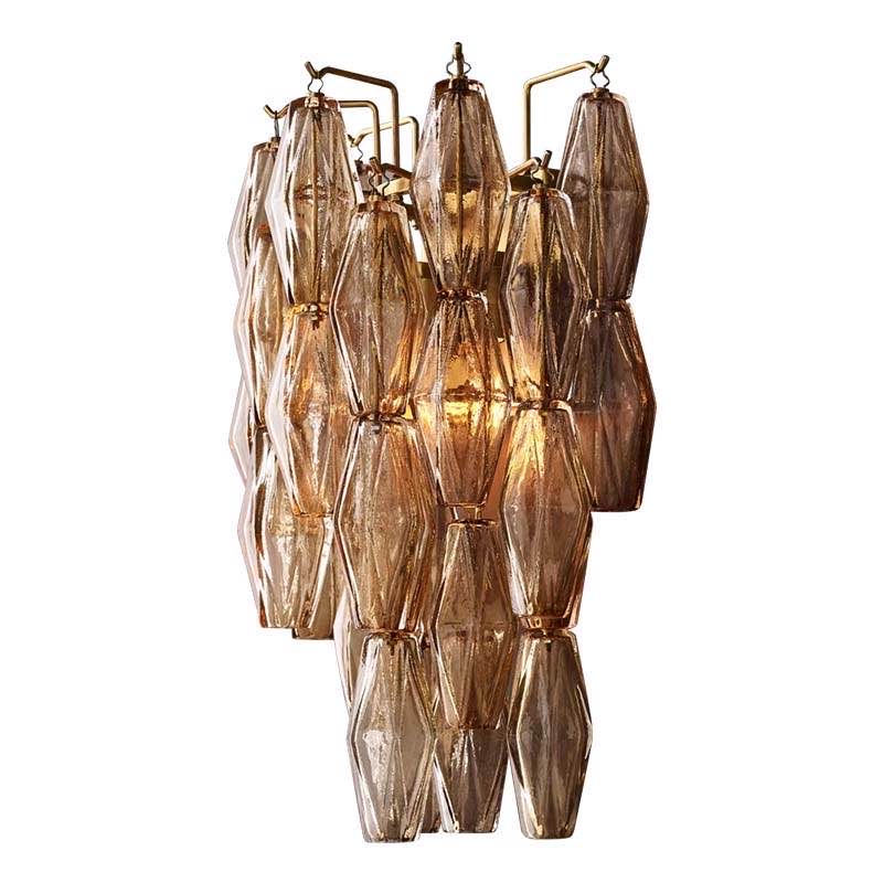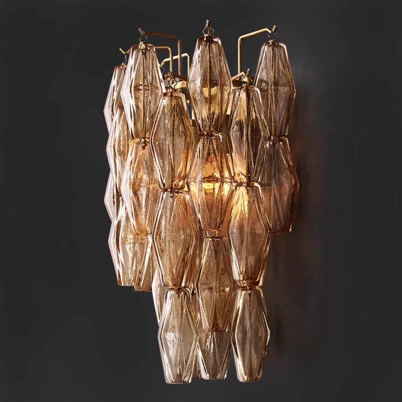 Бра из стекла Panaro- это Великолепное и привлекающее взгляд бра, выполненное в винтажном стиле. Настенный светильник в винтажном стиле состоит из красивых стеклянных многогранников из прозрачного или дымчатого стекла, образующих поразительную ярусную структуру. Каждый кусок стекла индивидуально прикрепляется к металлической раме.