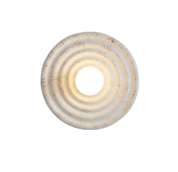 Бра Fresco в винтажном стиле на круглом гипсовом основании светлого цвета создает атмосферу старины с изящными и деликатными деталями. Основание бра выполнено из прочного гипса, отделанного таким образом, чтобы выглядеть изношенным и старым. Созданный вид состаренной специально дополняет винтажную эстетику.