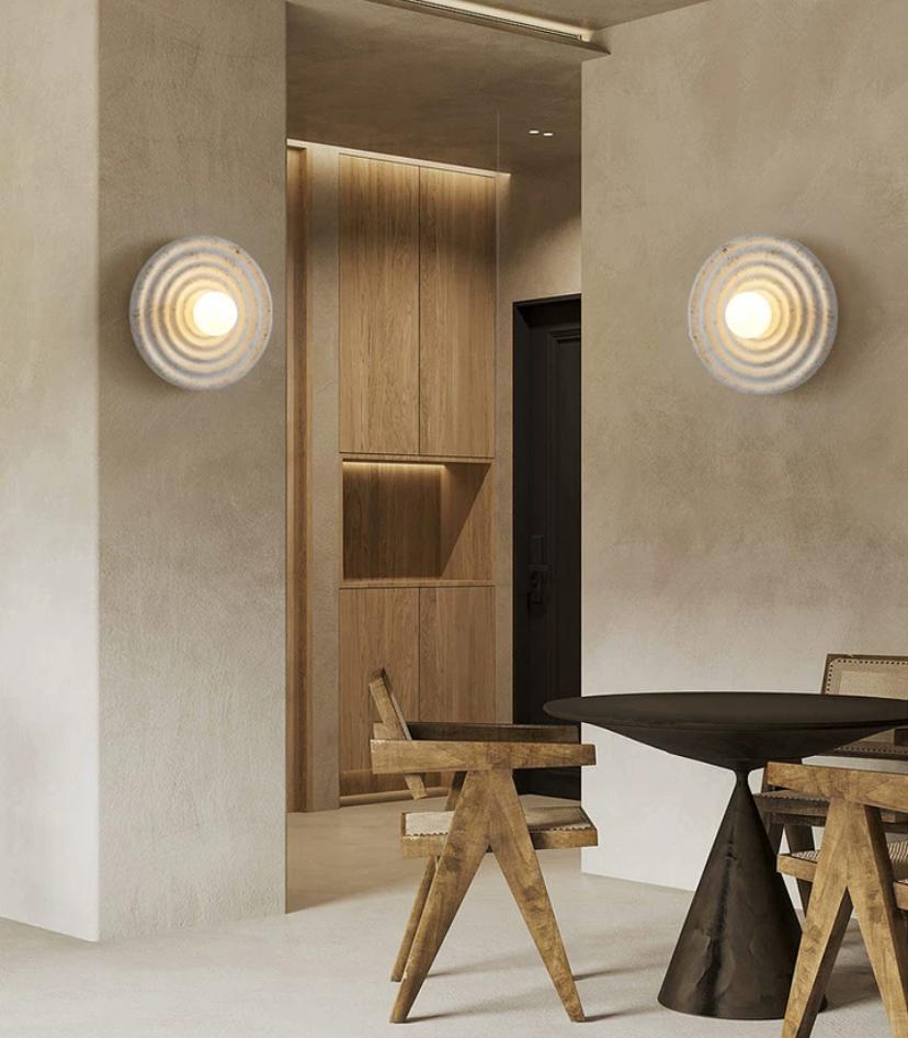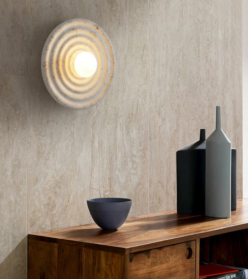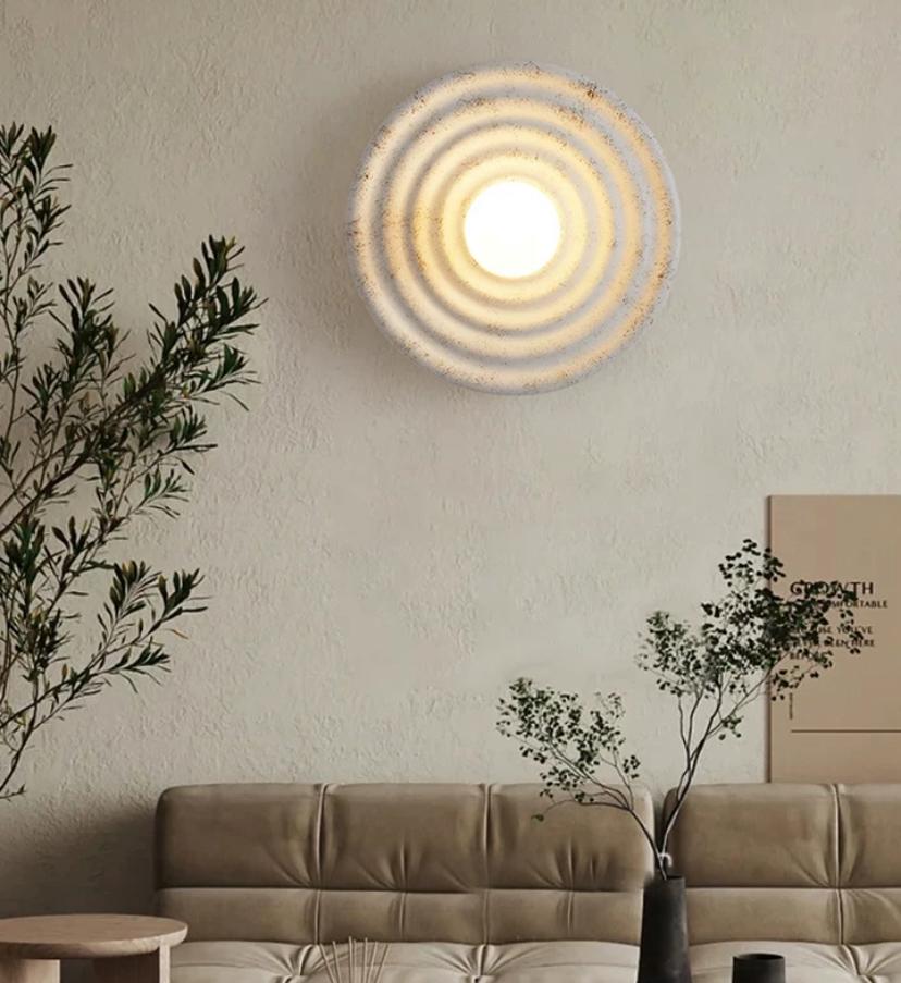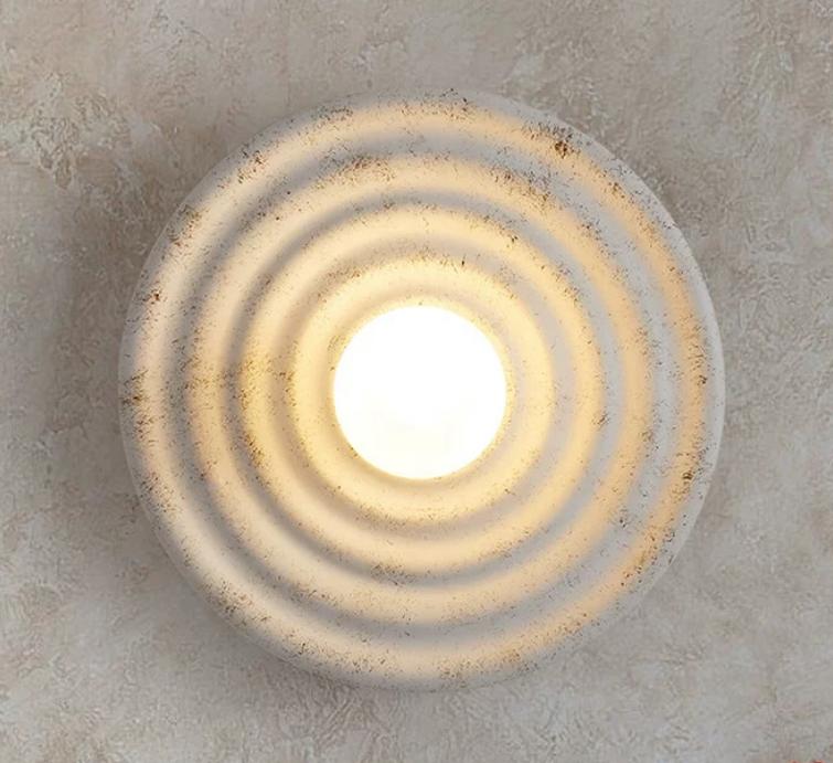 Бра в винтажном стиле на круглом гипсовом основании светлого цвета с усиленной старинной отделкой и центральным круглым источником света лампочкой — это прекрасное дополнение к интерьеру, особенно в старинных домах или в тех антуражах, которые играют с эпохами прошлого.