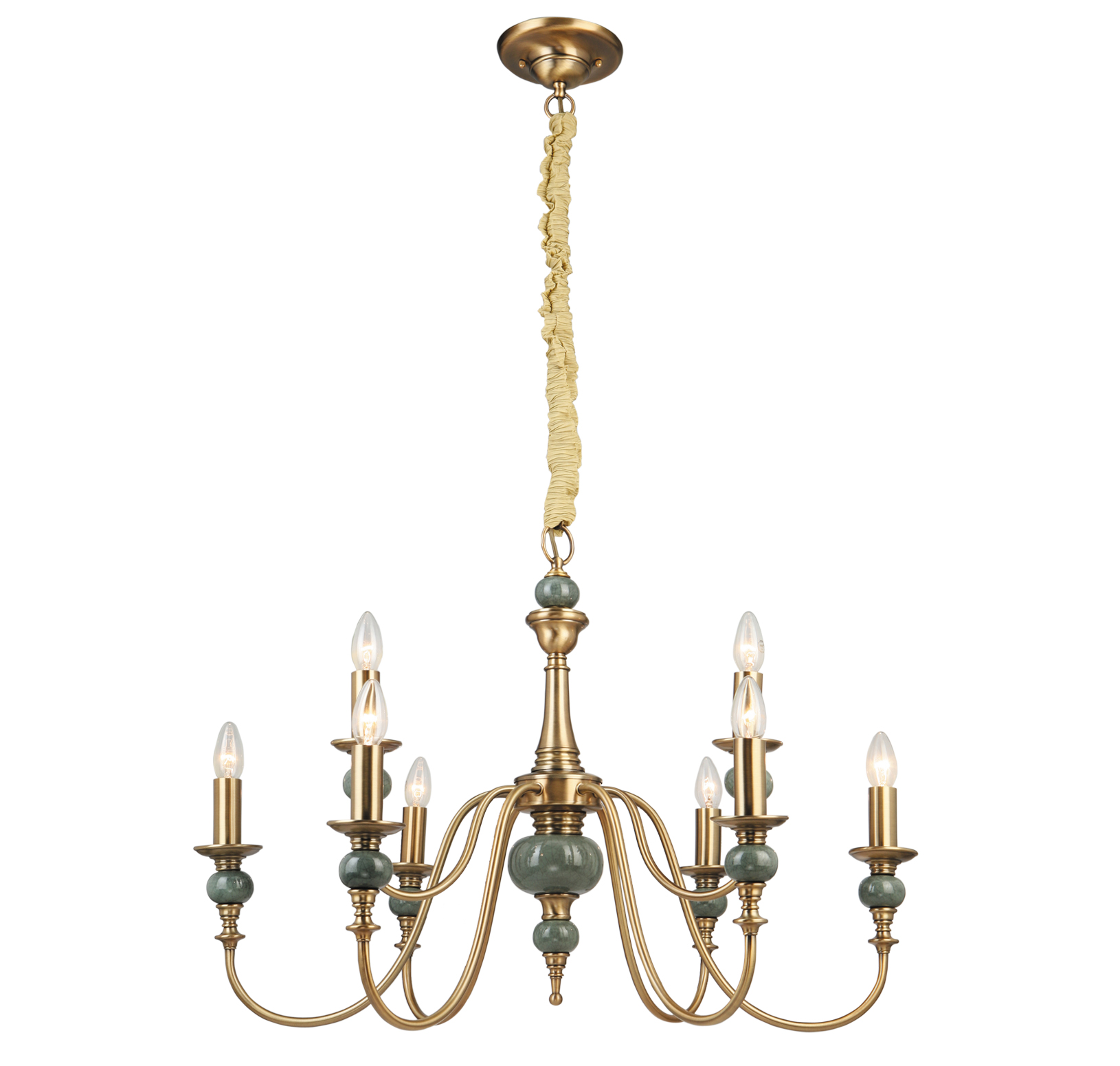Очаровательная люстра выполнена в классическом стиле. Ее детали выполнены в приглушенном изумрудном цвете, а сам корпус в благородном золотом. Такая люстра привнесет в ваш доп гармонию и уют.