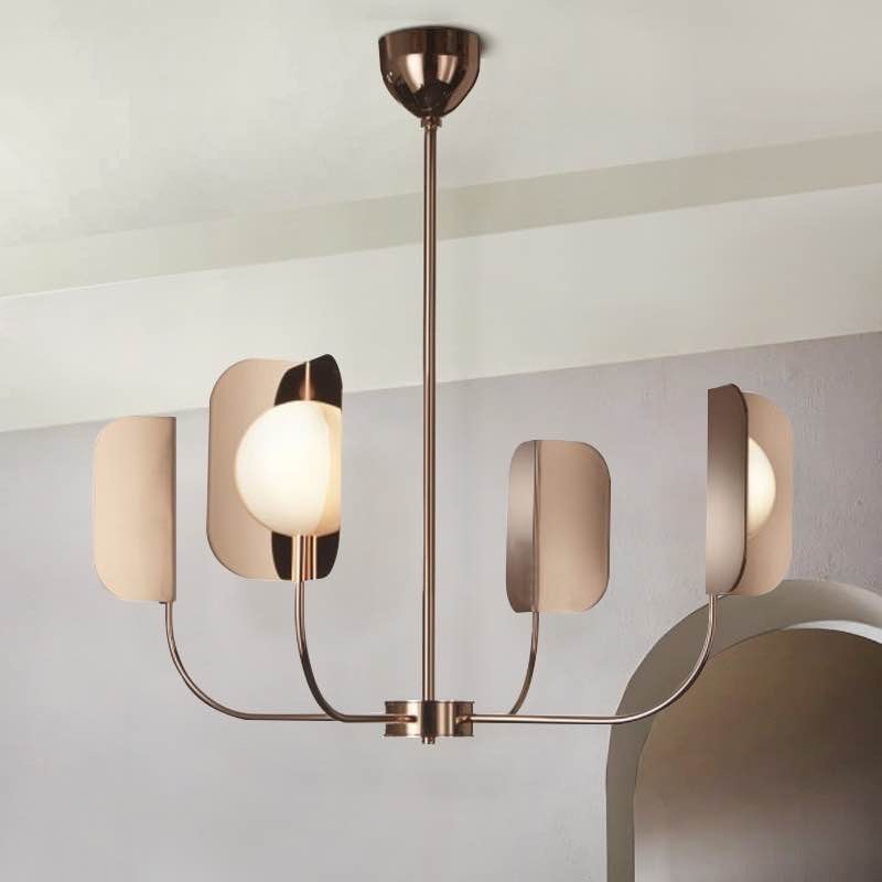Изумительная люстра медного цвета выполненная в классическом итальянском стиле. Такой светильник подарит сияющую и расслабленную атмосферу вашему дому. CLOUDY – это стильный свет, имеет легкий и ненавязчивый парящий силуэт из металла с полированной медной отделкой и белыми круглыми плафонами.