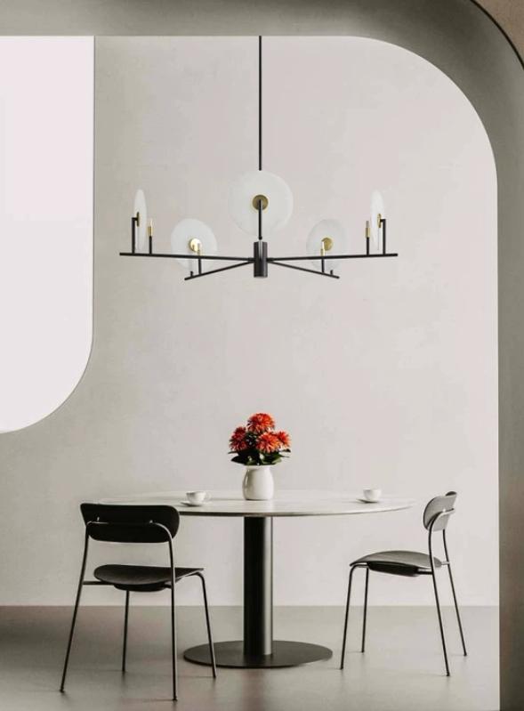 Футуристическая дизайнерская люстра Lina на черном металлическом основании в стиле модерн представляет собой элегантное сочетание технологичности и эстетики. На окружности основания расположены источники света, создавая равномерное и мягкое освещение помещения.