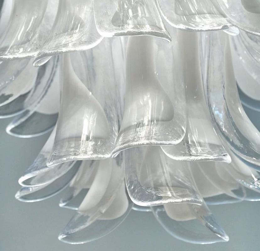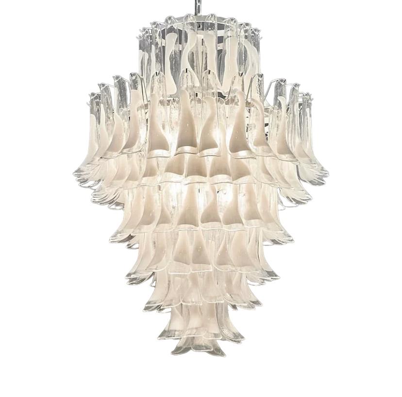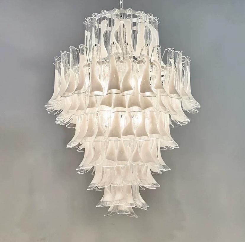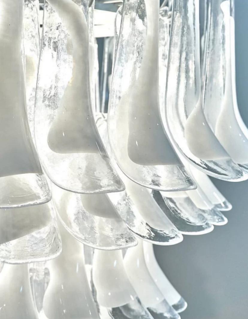 Роскошная люстра Swan из стекла с белыми вкраплениями глазури – настоящее произведение искусства, которое приковывает взгляды своей изящной красотой. Эта люстра, выполненная в высоту, является великолепным акцентом для помещений с высокими потолками или лестничных маршей.