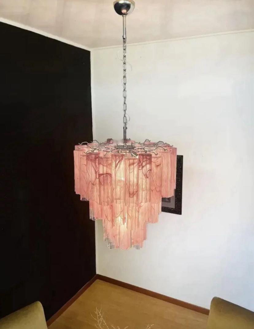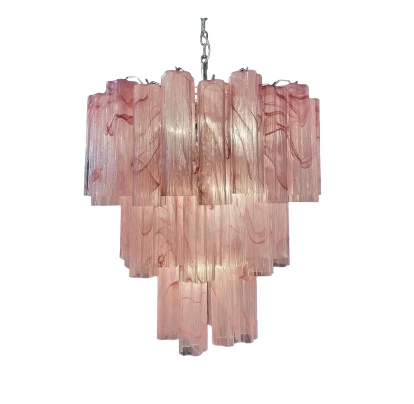 Люстра Zefir — эта великолепная люстра воплощение искусства, мастерски созданная вручную из превосходного стекла. Погрузившись в мир нежных розовых оттенков, она манит своей изящностью и очарованием. Каждый элемент, из которых состоит эта замысловатая композиция, представляет собой продолговатую колбочку, нежно играющую розовыми оттенками света и тени.
