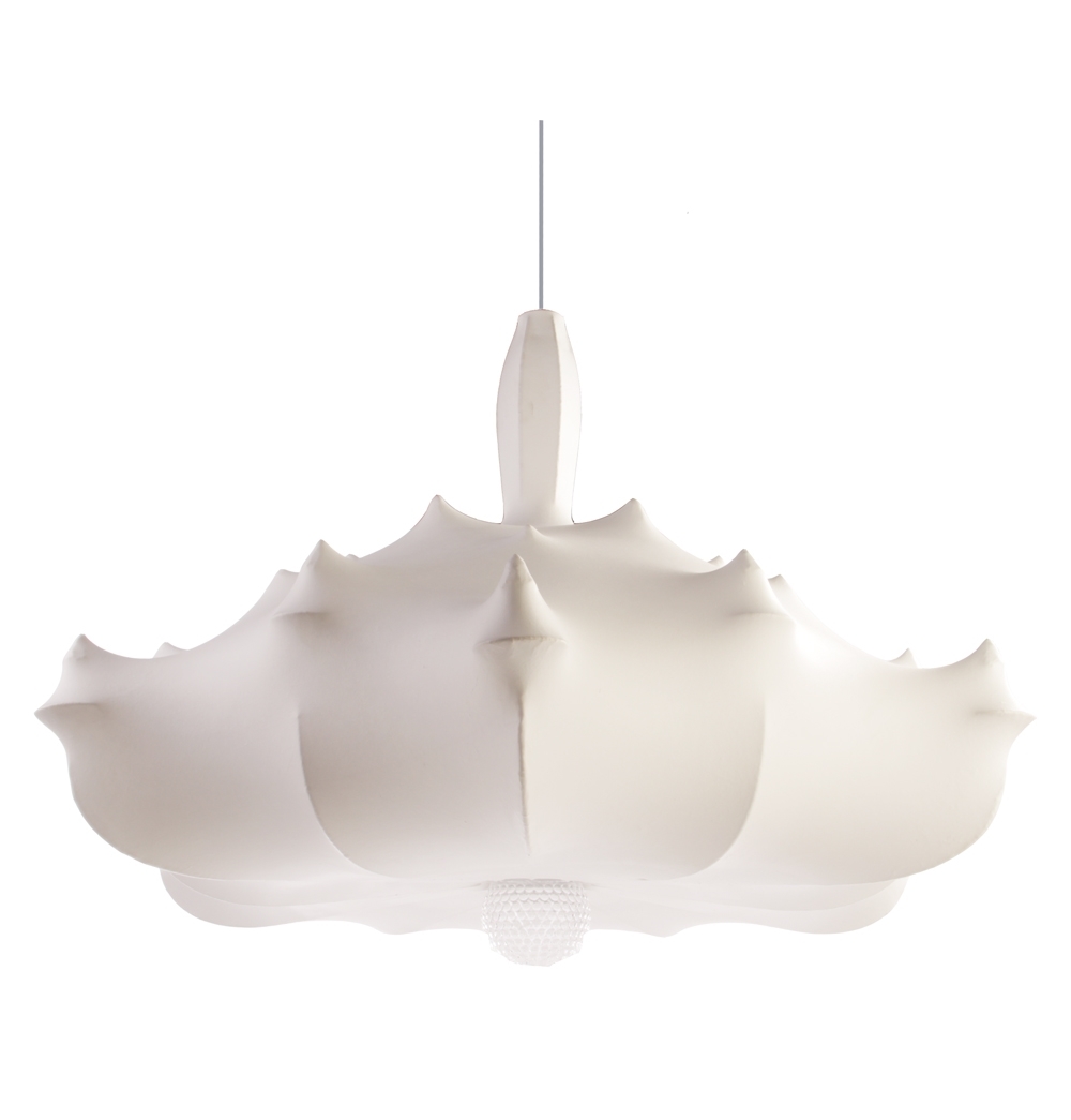 Роскошный потолочный светильник от Марселя Вандерса с первого взгляда поражает своим необыкновенно прекрасным обликом. Этот замечательный объект вызывает восхищение, благодаря своей совершенно нетипичной форме. Эта люстра выглядит так, словно она заключена в белый кокон, сотканный чудесными насекомыми. На самом же деле его создатель по уникальной технологии на стальное основание прибора наматывает на него липкие полимерные нити. Спустя какое-то время полимер застывает, образуя плотную белоснежную оболочку, такую хрупкую на вид, но очень прочную на самом деле. Zeppelin White станет превосходным дополнением к интерьеру просторной гостиной или же, например, уютного ресторана.