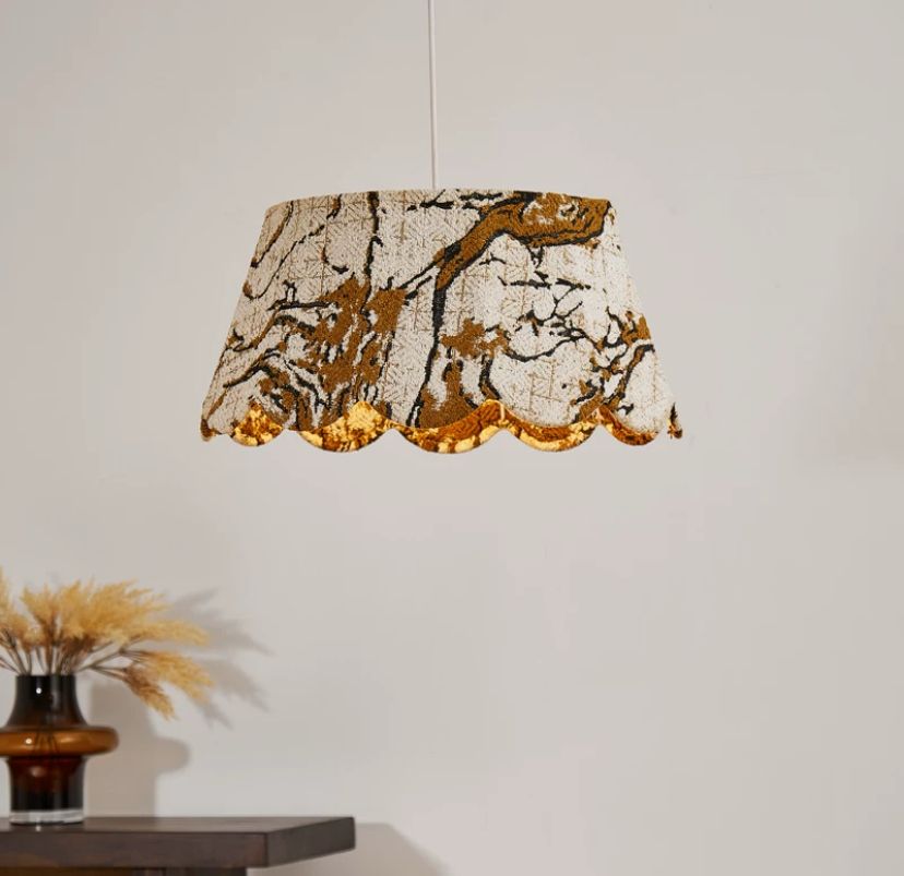 Эти узоры вытканы с особой тщательностью, создавая игру света и тени, когда светильник включен. Лучи, проходя сквозь переплетения нитей, танцуют на стенах, создавая атмосферу уюта и интимности. Цветовая палитра узоров сдержанная и элегантная, сочетающая в себе приглушенные оттенки бежевого, серого и кремового, что позволяет светильнику гармонично вписаться в любой интерьер, не перетягивая на себя излишнее внимание.