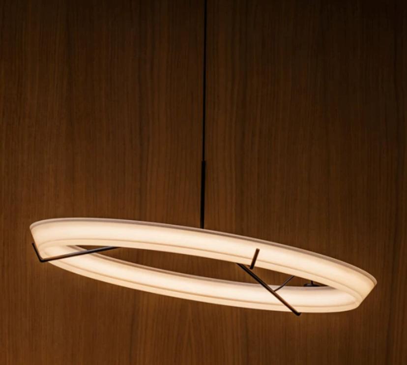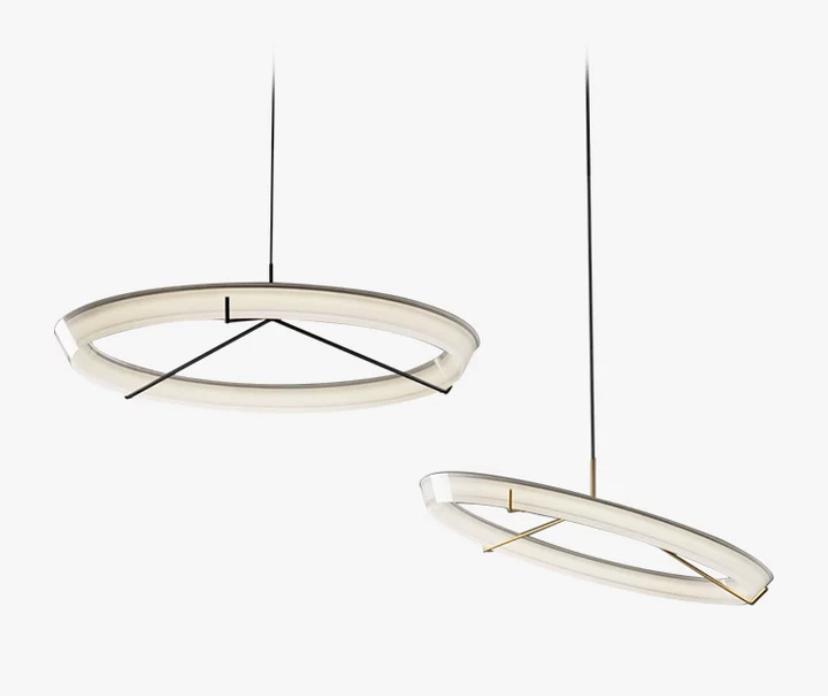 Светильник Halo в форме кольца с вариантами наклона по диагонали, на тонком шнуре и возможностью регулировки высоты — это функциональное и стильное решение для освещения любого помещения. Он придает интерьеру утонченность, а его многофункциональность позволяет создать уникальное и комфортное освещение.