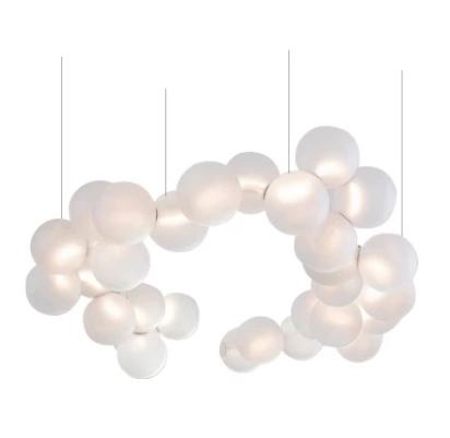 Особую изюминку светильнику придают многочисленные стеклянные шары, которые расположены по окружности металлического корпуса. Эти шары изготовлены из полуматового белого стекла, что придает им необычайную легкость и воздушность. Полуматовая поверхность шаров позволяет создать мягкое, рассеянное освещение, которое не создает резких теней и делает атмосферу в помещении более теплой и уютной. Расположение шаров по окружности корпуса обеспечивает равномерное распределение света, исключая зоны избыточной яркости или, наоборот, недостаточного освещения.