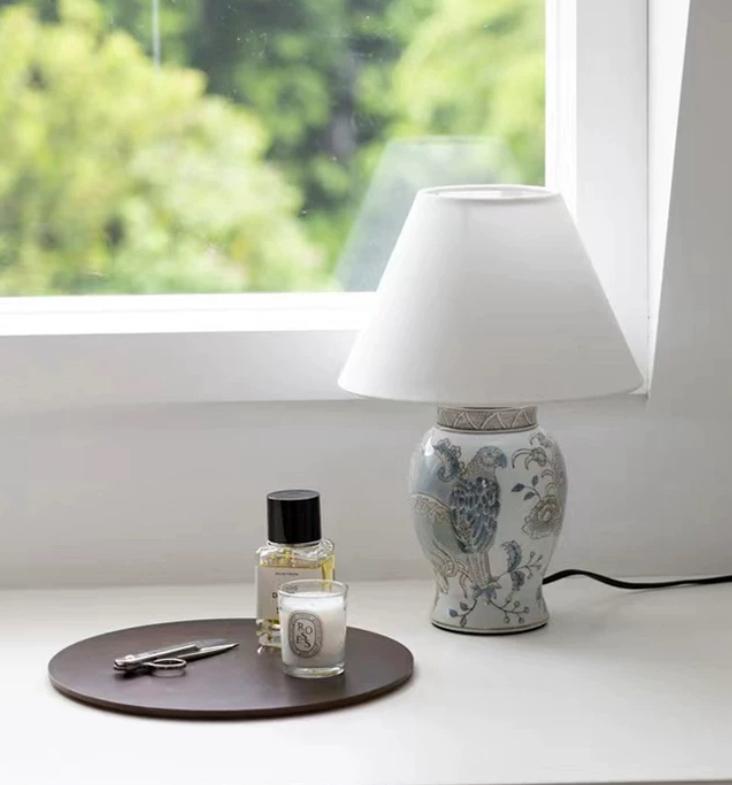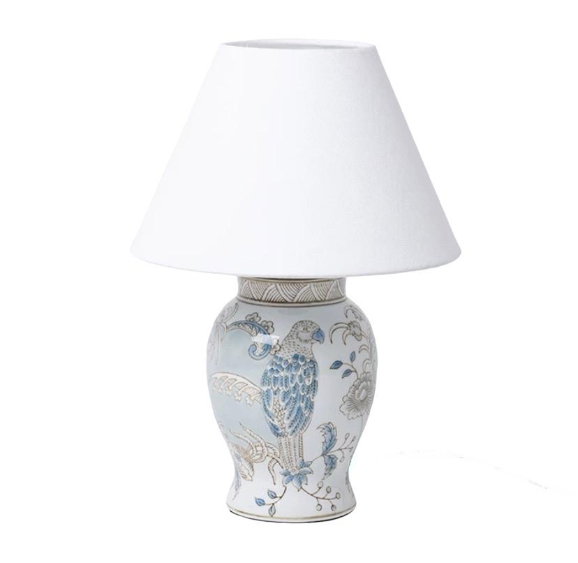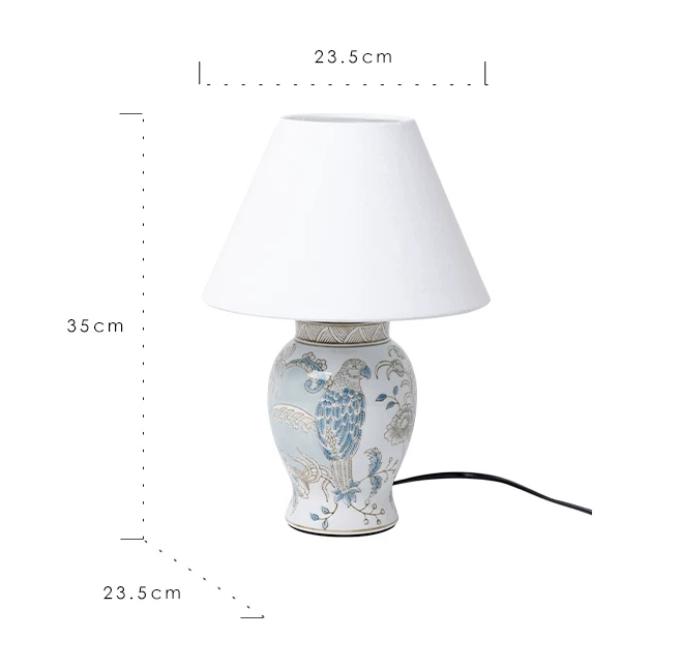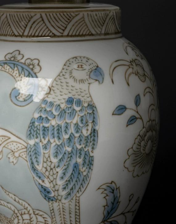 Настольная лампа Fauna выполнена в восточном стиле представляет собой элегантное сочетание керамики и света. Основание лампы выполнено из керамики светлого цвета, которая покрыта нежно голубым рисунком. Рисунок на основании включает в себя изображения птиц и цветов, создавая атмосферу природы и красоты. Керамика основания также покрыта глазурью, что придает ей гладкую и блестящую поверхность.