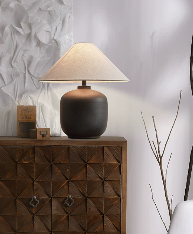 Абажур, контрастирующий с основанием, выполнен в светлых тонах, что придаёт лампе мягкое свечение и уют. Его материал настолько прост и естественен, насколько это возможно. Возможно, это тонкий лен или хлопок, слегка грубоватый на ощупь, но именно такая текстура и привлекает своим теплом и душевностью. Светлый абажур может быть нежного молочного оттенка или бледного песочного цвета — тонкие нити слегка просвечивают и создают мягкий, рассеянный свет, обволакивающий пространство вокруг.
