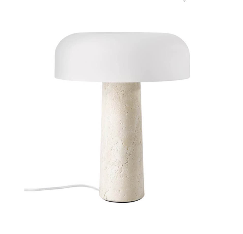 Настольная лампа в современном стиле c каменным основанием. Благодаря лаконичной форме и нейтральному спокойному цвету такая лампа хорошо впишется в интерьер любой квартиры.