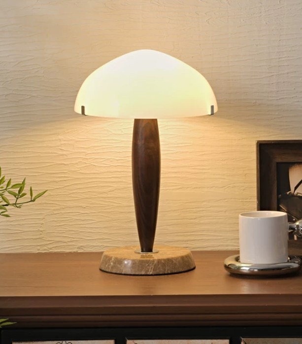 Элегантное деревянное основание плавно переходит в утончённый стеклянный верх, создавая изысканный контраст между теплым природным материалом и прохладным утонченным стеклом. Само стекло, молочно-матовое, преломляет свет мягкими, рассеянными потоками, обеспечивая уютное и гармоничное освещение. Это освещение, в свою очередь, весьма благоприятно для глаза, не утомляет его и идеально подходит для чтения вечером, либо создания расслабляющей обстановки в комнате.