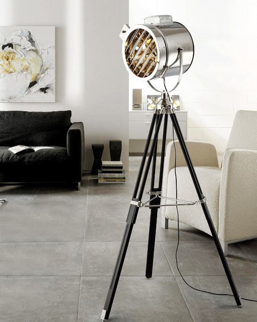 Камера! Мотор! Стильный, напольный прожектор станет ярким акцентом в любом интерьере, особенно в интерьере стиля лофт. Этот торшер, состоящий из черной треноги и хромированного основания, станет настоящей находкой для любителей всего оригинального.
