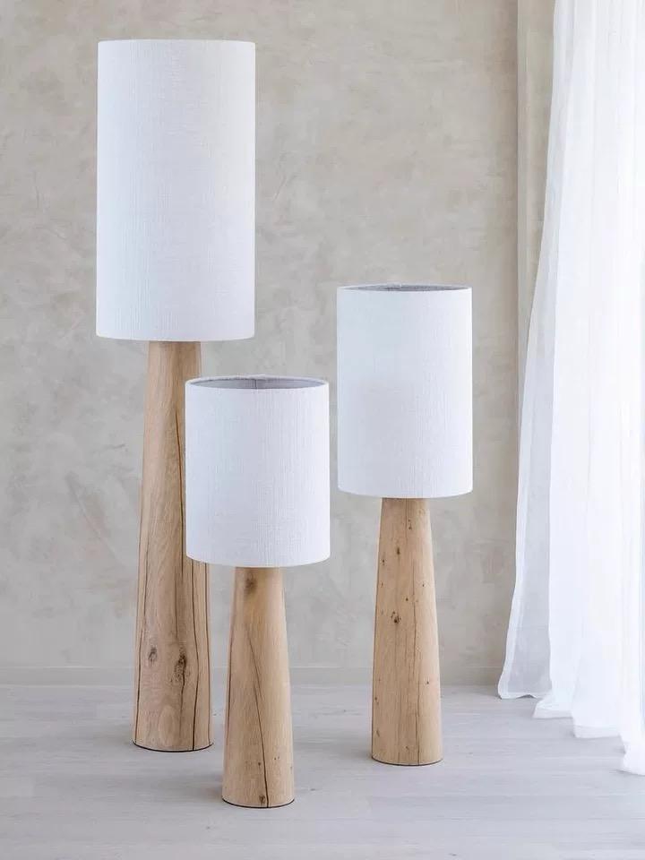 Основание торшера выполнено из дуба, создавая прочную и устойчивую конструкцию. Дуб придает торшеру естественную и теплую текстуру, что добавляет натуральности в помещение.