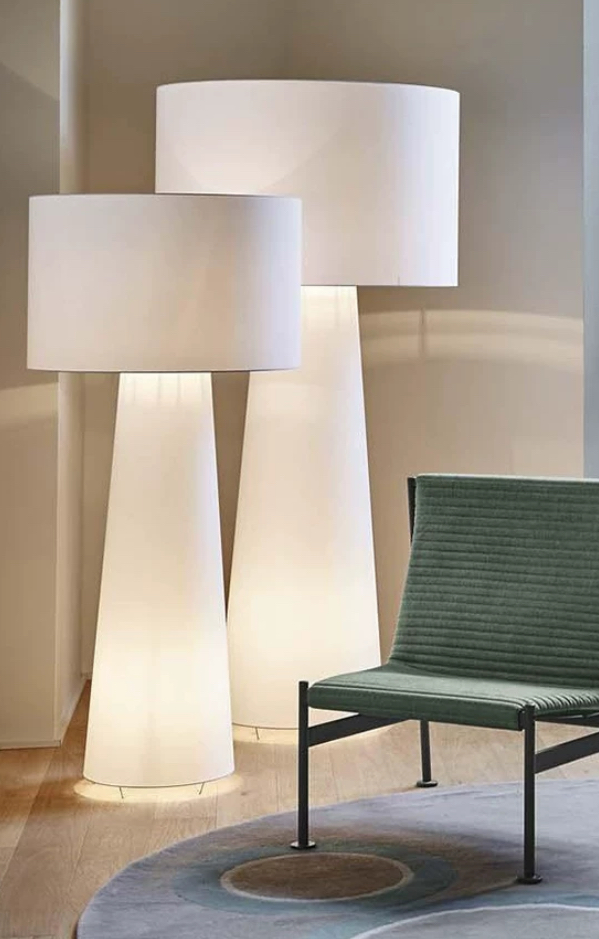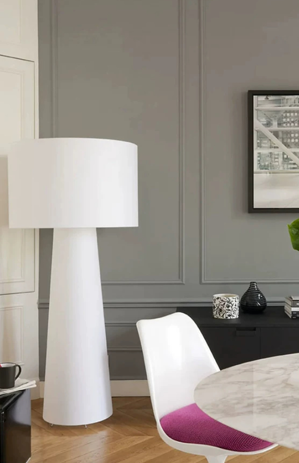 Большой белый абажур, выполненный из высококачественных материалов, идеально дополняет образ торшера. Его поверхность блестит и переливается при попадании света, создавая мягкое и рассеянное свечение, которое наполняет комнату теплом и уютом. Форма абажура продумана до мельчайших деталей; он имеет прямые края, которые придают ему воздух лёгкости и лёгкого изящества.