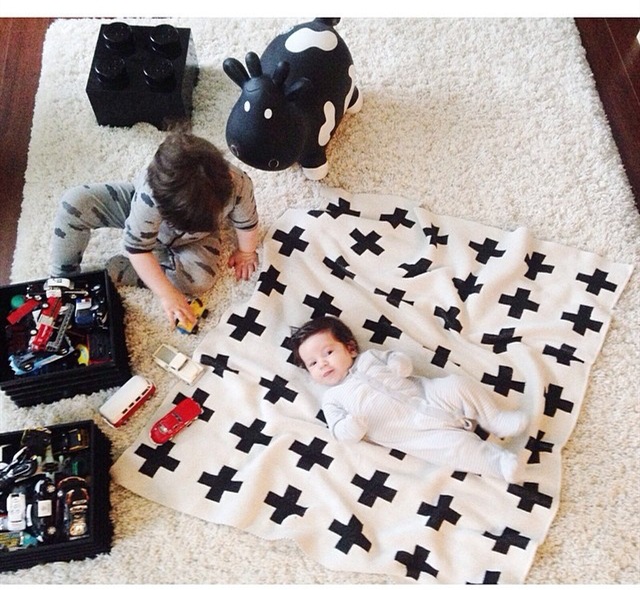 Детский черно-белый плед, который на протяжении уже нескольких лет мелькает на страницах глянцевых журналов. Отныне чёрный и белый – это цвета унисекс, которые одинаково хорошо подойдут для оформления комнаты и мальчика, и девочки. С помощью такого черно-белого пледа, сочетающего два нейтральных цвета, можно создать современный уникальный художественный образ, уравновешенный и персонализированный. Чёрно-белая цветовая комбинация очень элегантна, даёт большой простор для полёта фантазии и никогда не выходит из моды. Такой шерстяной плед легко уживется в комнате такого популярного сейчас, скандинавского стиля, а также стиля: минимализм, модерн, ар-деко, прованс или весёлый фьюжн.