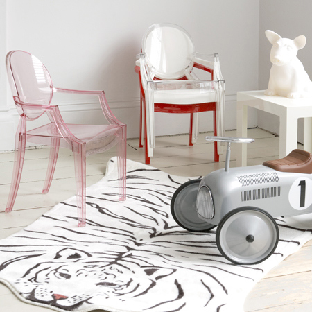 На волне неудержимой популярности Louis Ghost родилась бейби-версия прославленного творения Старка. Мини версия Ghost, унаследовавший классические линии, материал, прочность и эргономичность своего предшественника, учит самых маленьких с самого начала пользоваться «взрослым» стулом, пусть и небольшим по размеру. Предназначенный для детской аудитории, стул представлен в широкой гамме самых радостных и сочных оттенков в нашем интернет магазине