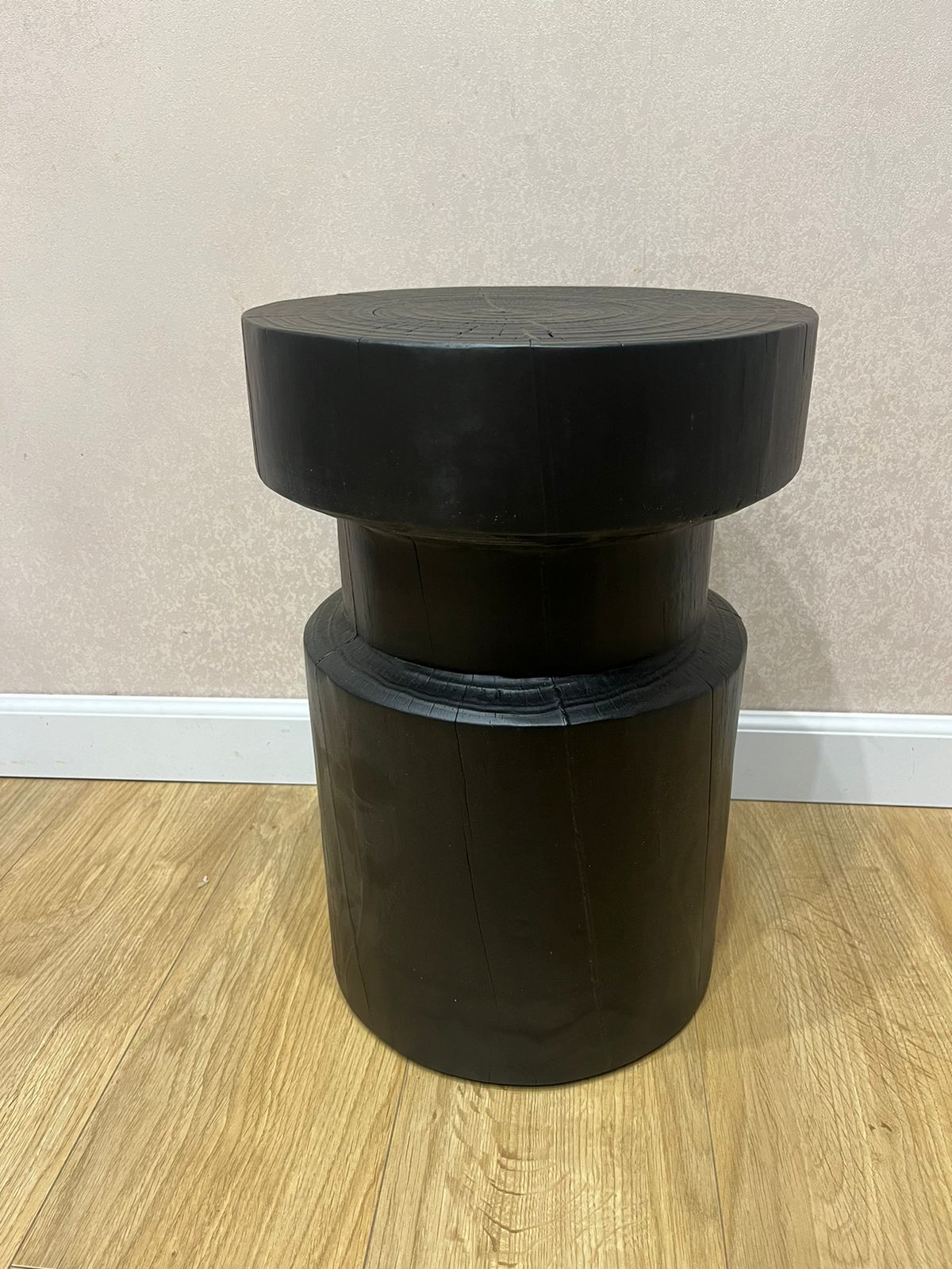 Столик выполнен в форме цилиндра, что делает его не только функциональным, но и стильным элементом интерьера. Такая форма позволяет ему мягко вписываться в любое пространство, будь то современная гостиная или классически оформленный кабинет. Отсутствие углов придает столику обтекаемость и некоторую скульптурность, что делает его похожим на произведение современного искусства.