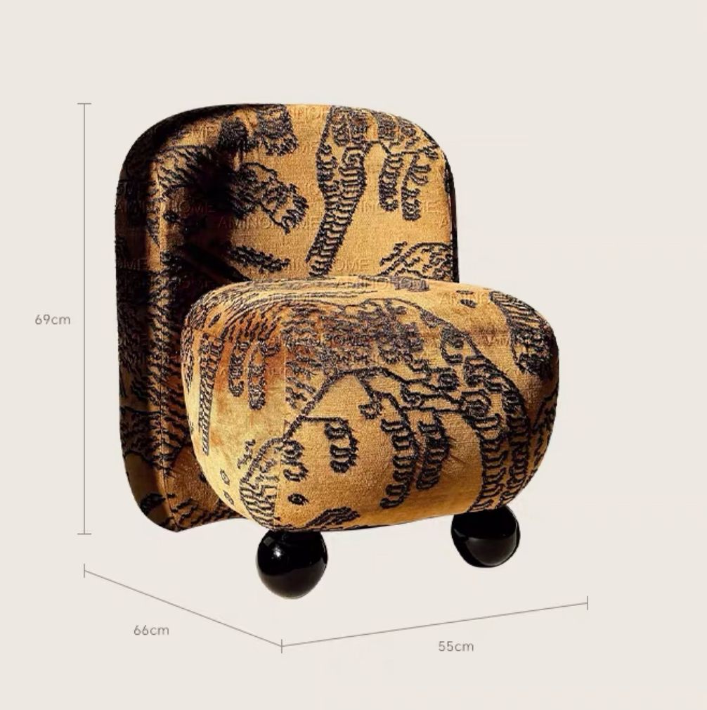 Кресло опирается на две круглые ножки-шарики, выполненные из цельного дерева. Их гладкая поверхность и приятная на ощупь текстура придают креслу тепло и естественность. Форма шаров не только эстетична, но и обеспечивает удивительную устойчивость, несмотря на кажущуюся простоту конструкции.