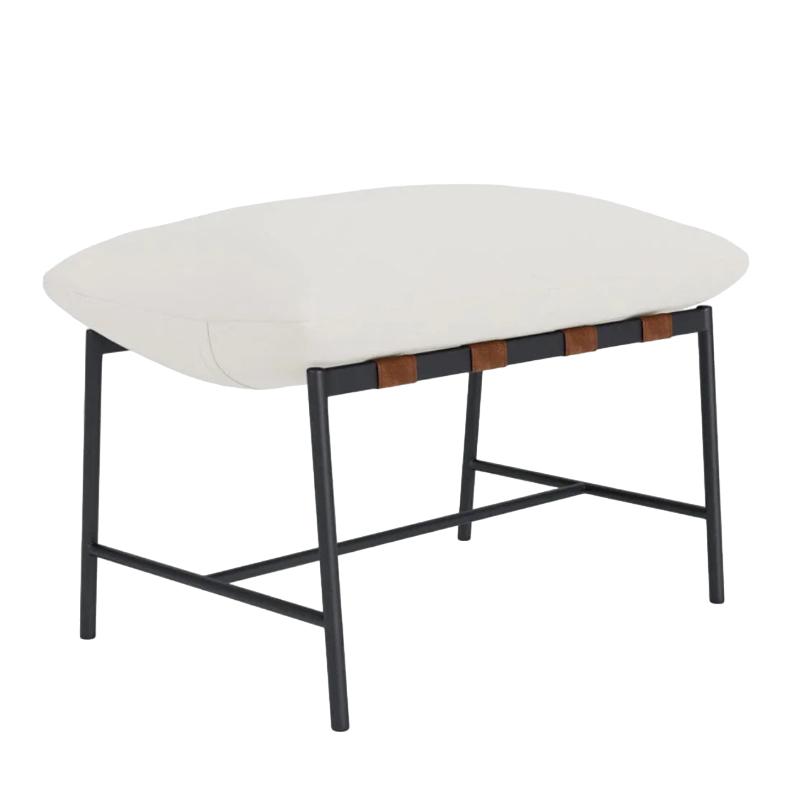 Дизайнерский пуф Monblan из металлического каркаса, с натянутыми кожаными ремнями рыжего цвета и удобной белой подушкой – это отличный выбор для тех, кто предпочитает современный стиль, комфорт и функциональность в своем интерьере.